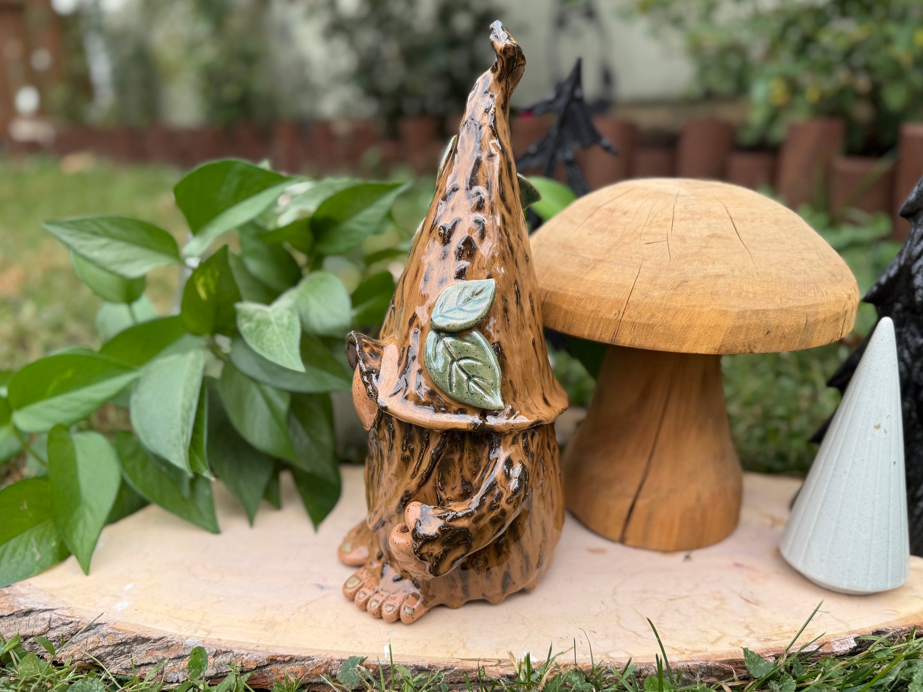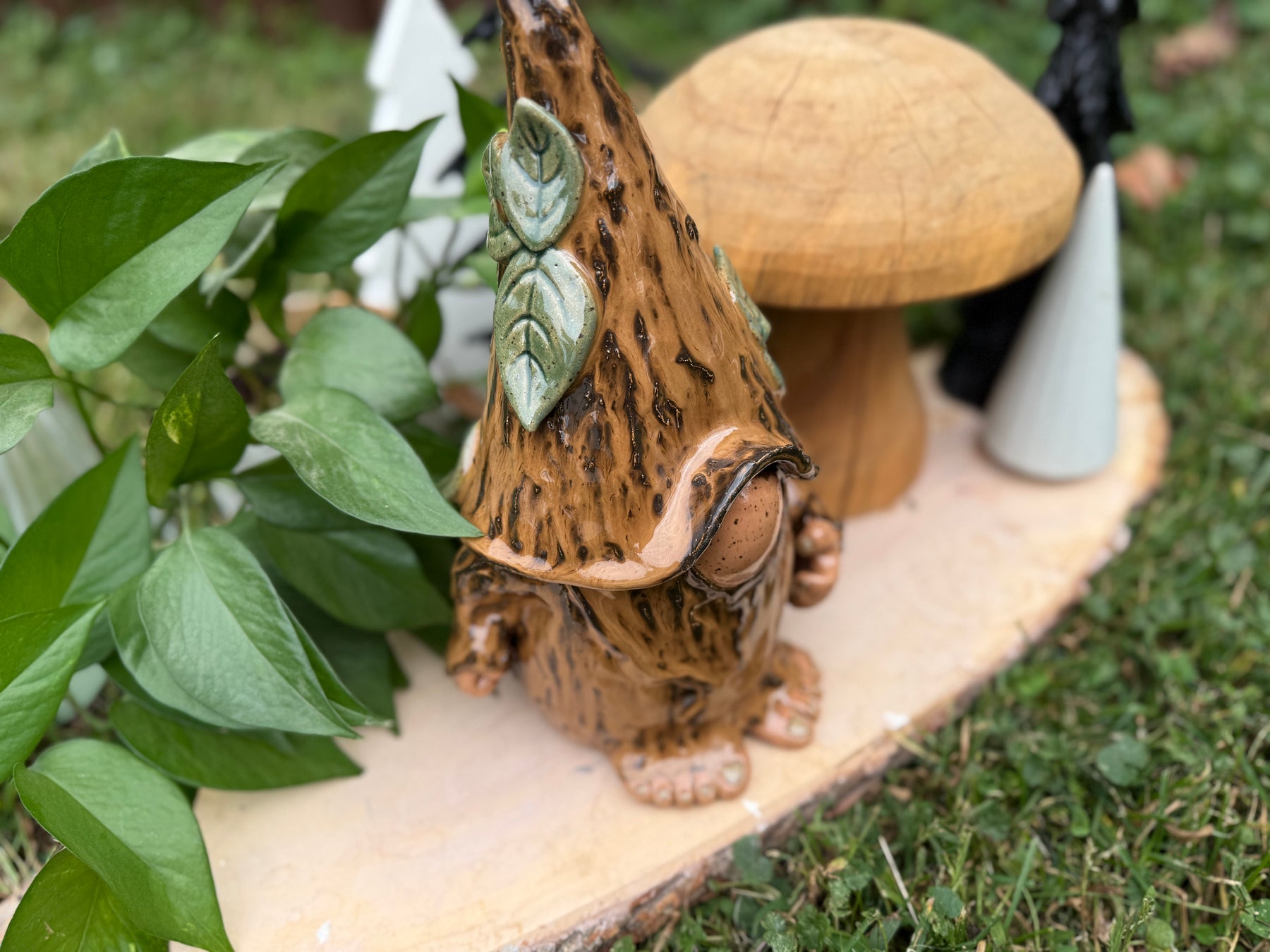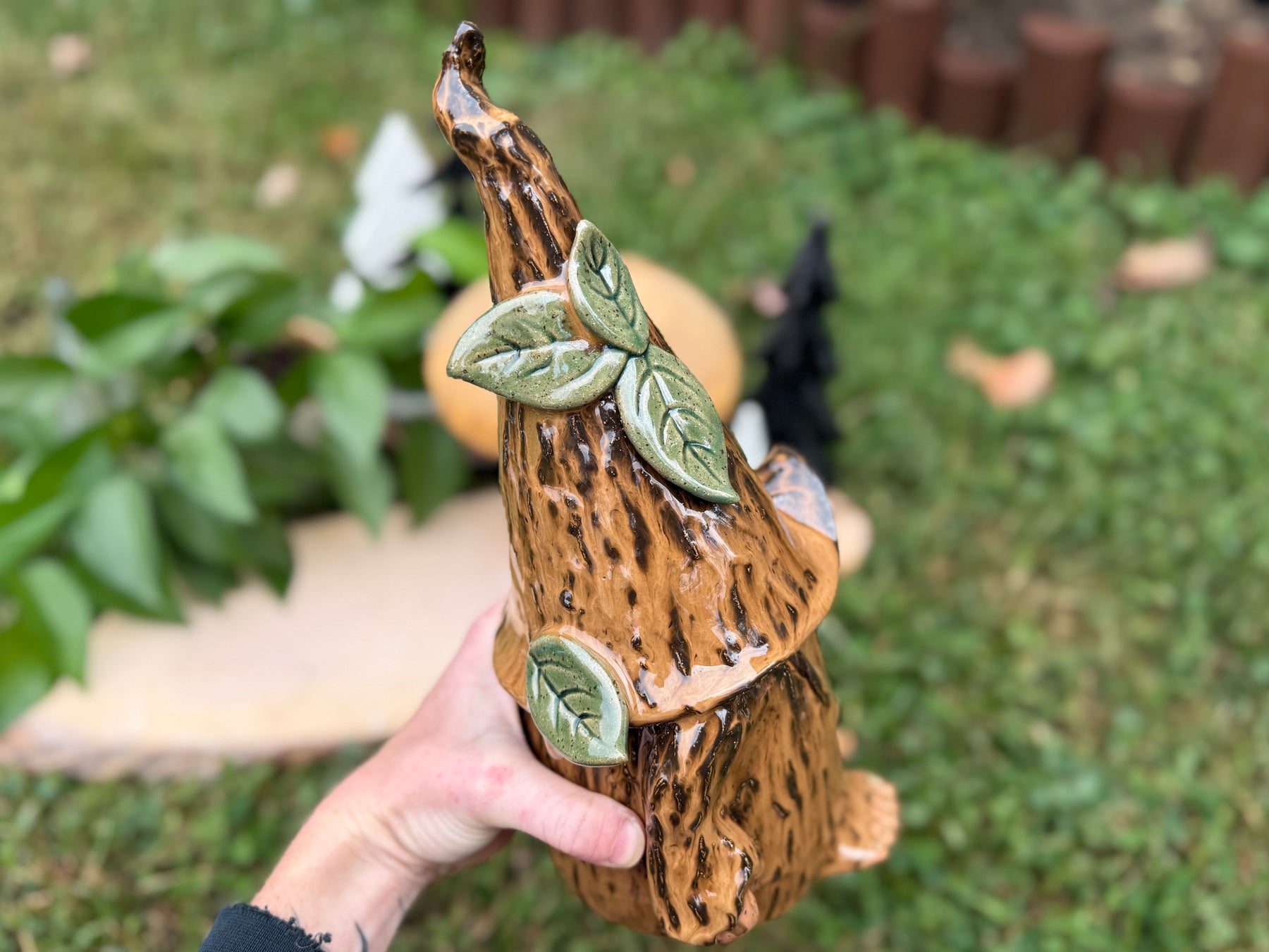 This gnome statue is the perfect gift for any lover of monsters, of whimsy and of unique handmade items. The gnome is thrown on the wheel in two parts, then manipulated, so it is completely hollow with a small ventilation hole on the bottom. It is fully glazed so it is technically safe to be outside - though I do recommend bringing it inside during any kind of extreme weather (freezes, high winds, etc).